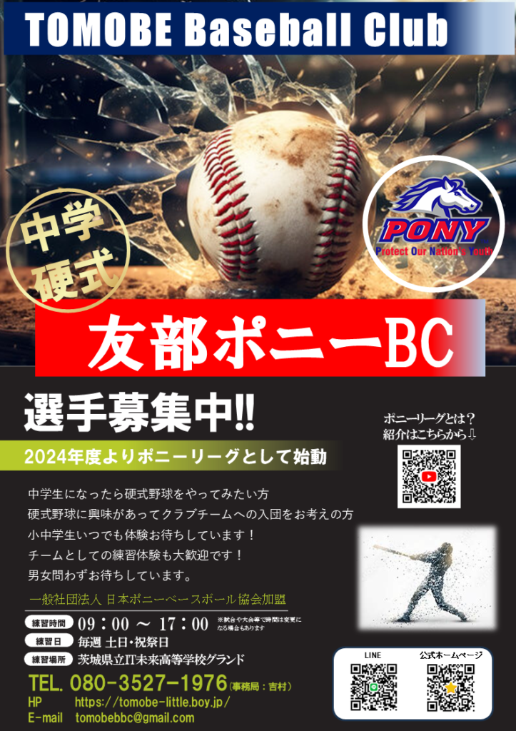 茨城県央地区では唯一のポニーリーグで一緒に野球をしましょう!